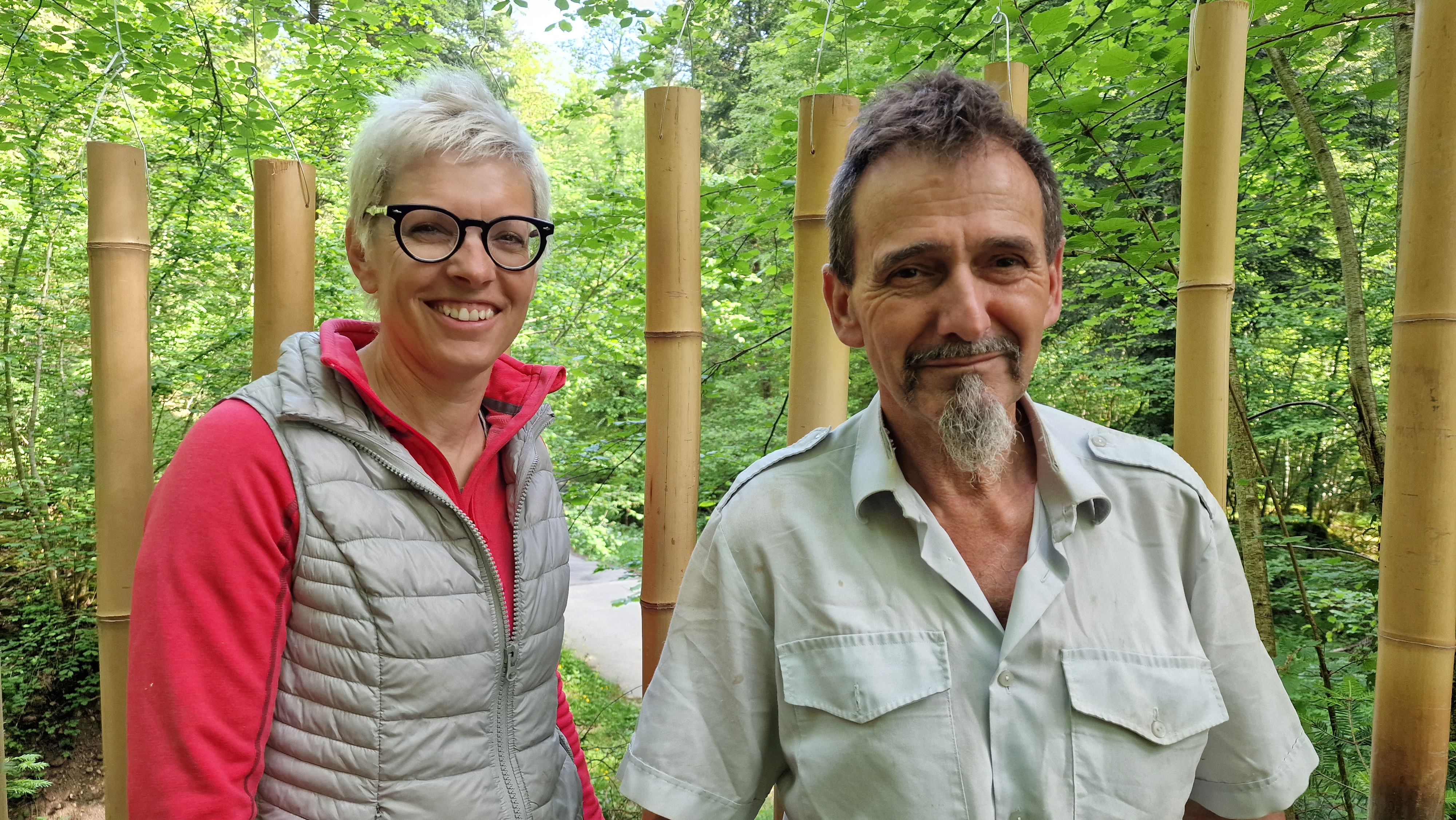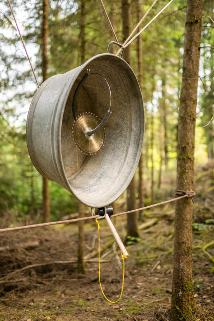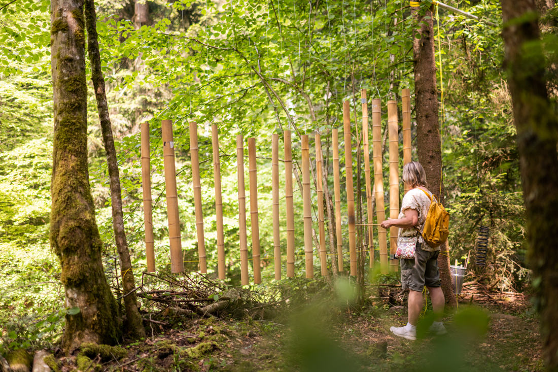 Dass man auch aus Alltagsgegenständen und Bauelementen wunderbare Klänge erzeugen kann, zeigt die Klangstube im Freien von Daniela Weber und Manfred Wüthrich.