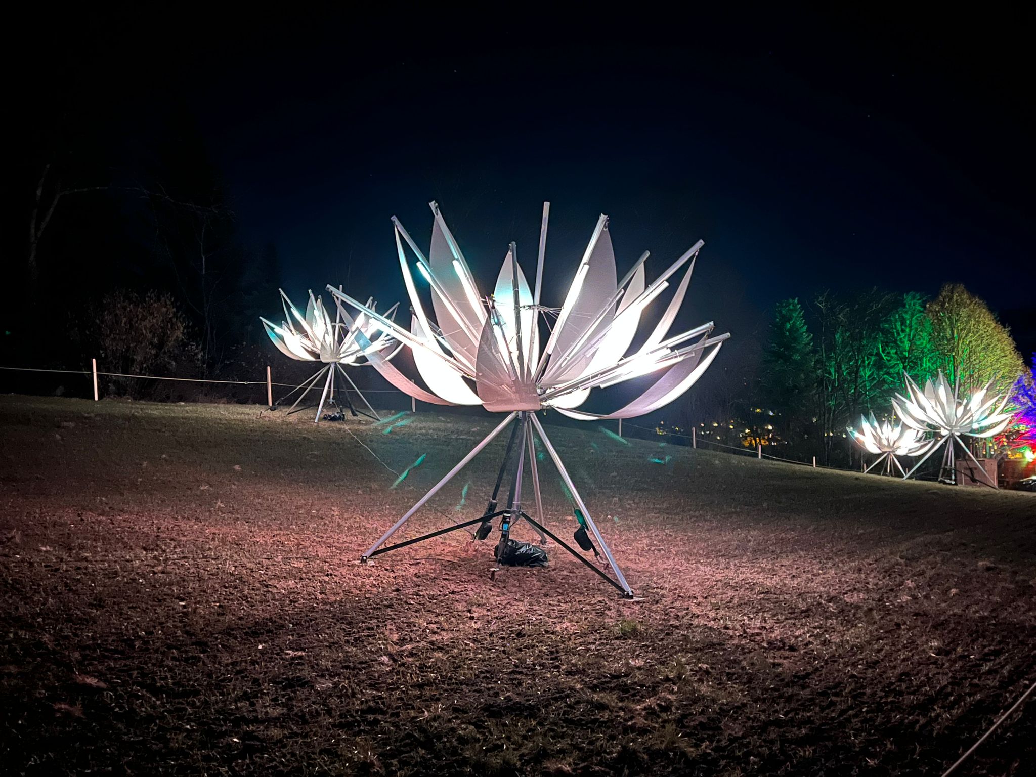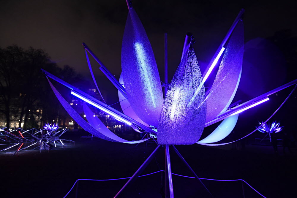 Lotus ist eine Blumenlandschaft, die sich im Raum entfaltet und in welcher der Betrachter eingeladen ist, frei zu wandern. Das in die Struktur der Pflanze integrierte Licht wird durch ihre grossen Blätter gestreut. wodurch eine entspannende Atmosphäre geschaffen wird.