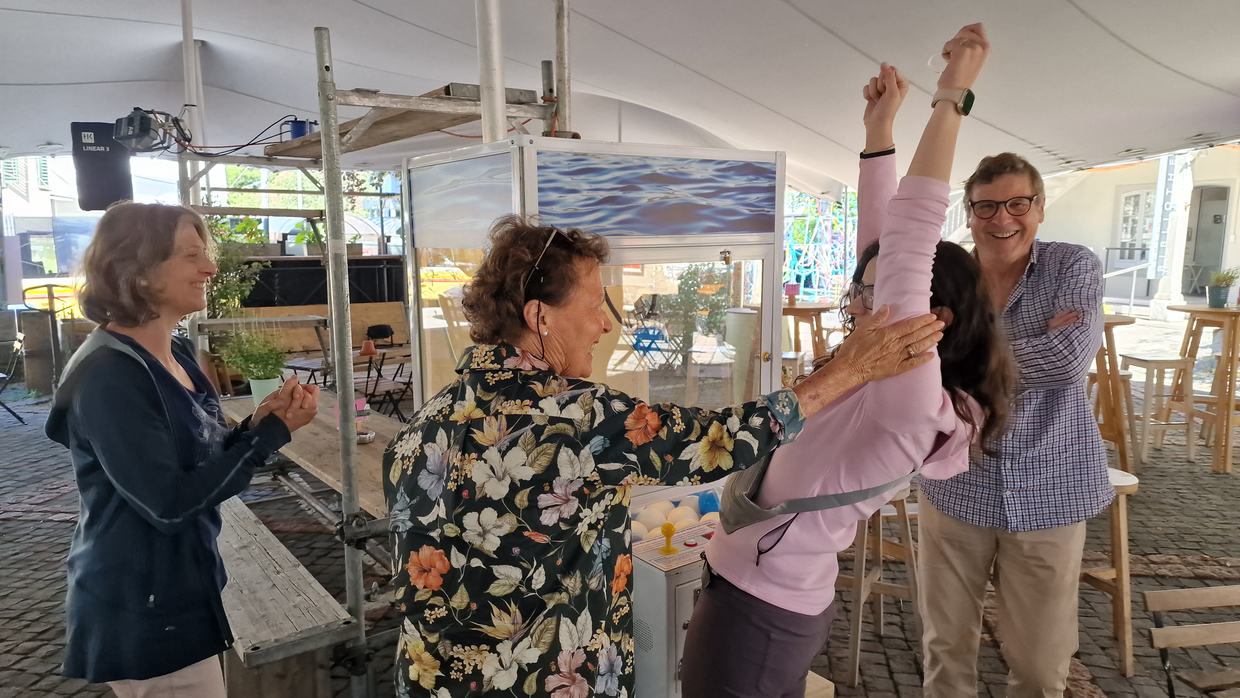 Die Installation «Wasserspiel» möchte auf die unersetzbare Bedeutung von Wasser verweisen und dabei spielerisch seinen Wert betonen. Die Selbstverständlichkeit, mit der wir unser Wasser verbrauchen, wird über die von Glück und Zufall erschwerte Erreichbarkeit im Spiel hinterfragt und reflektiert. Jede Portion Steffisburger-Wasser ist ein nummeriertes und signiertes Unikat, welches sich als lokales Teilvolumen in seiner buchstäblich elementaren Bedeutsamkeit vom globalen Wasservorkommen nicht unterscheidet.